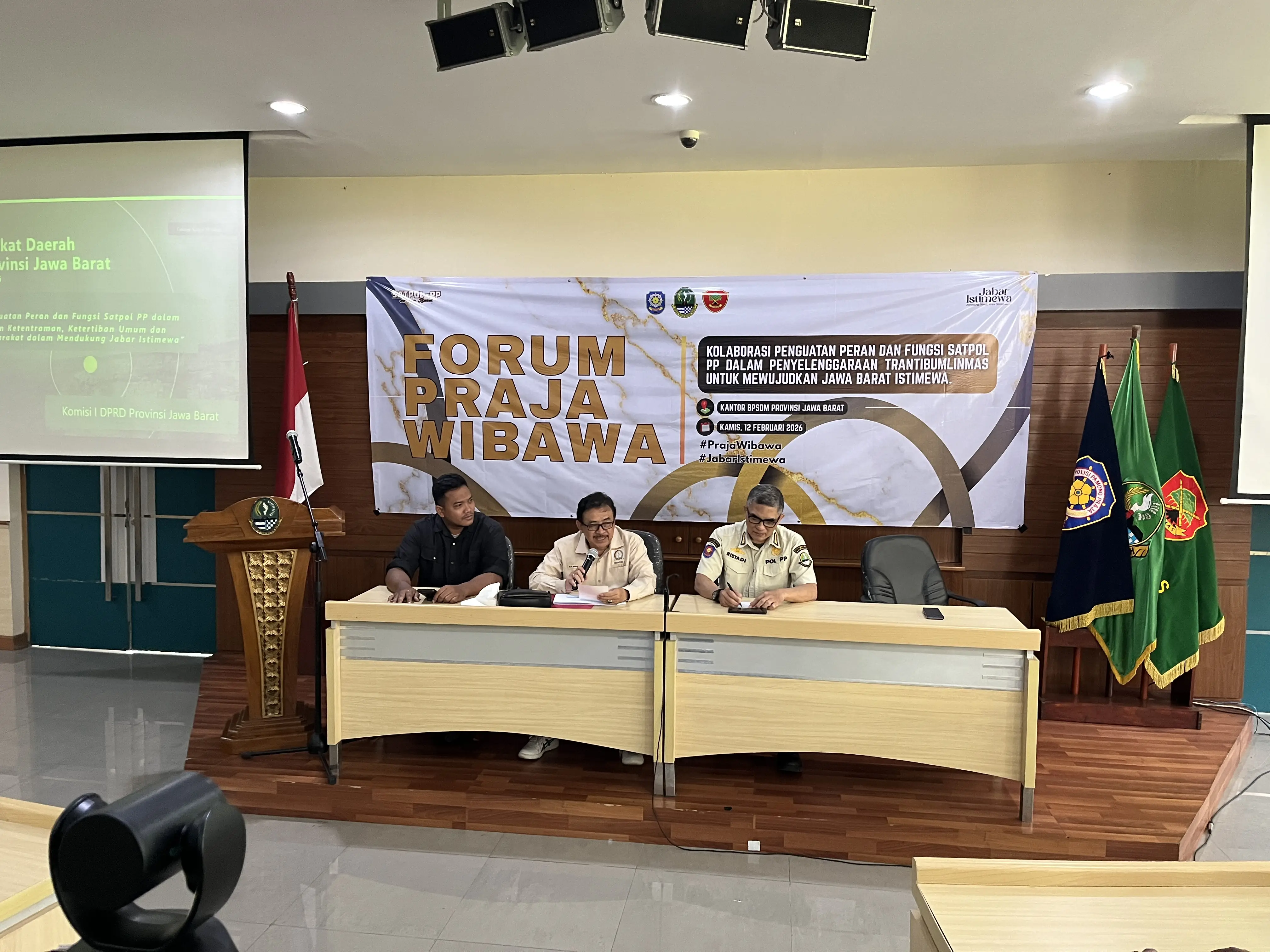 RRI.CO.ID, Cimahi - Komisi I DPRD Provinsi Jawa Barat mengapresiasi penyelenggaraan Forum Praja Wibawa sebagai sarana koordinasi Satpol PP se-Jawa Barat, diselenggarakan di Gedung Gedung BPSDM Jawa Barat, Kamis 12 Februari 2026.Anggota Komisi I DPRD Jawa Barat, Sidkon Djampi, menilai forum tersebut penting untuk memperkuat konsolidasi tugas menjaga ketertiban dan ketenteraman masyarakat.