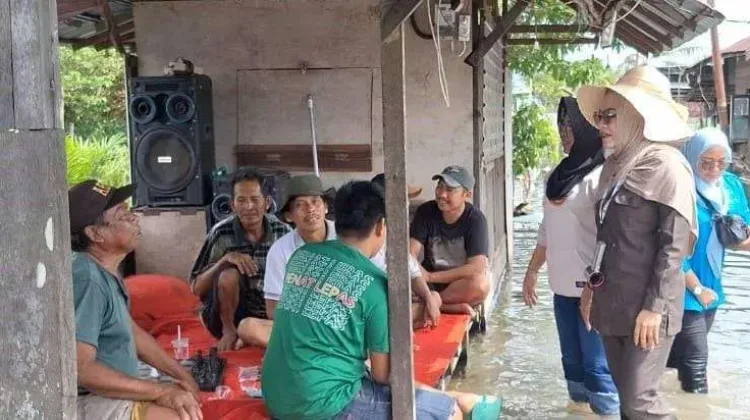 KBRN, Batola: Ketua DPRD Barito Kuala, Ayu Dyan Liliana Sari Wiryono, meninjau langsung kondisi banjir di Kecamatan Jejangkit, Senin siang (13/1/2025). Kehadiran pimpinan legislatif kabupaten ini dilakukan sebagai bentuk dukungan bagi warga terdampak di wilayah yang cukup parah dan terisolir.