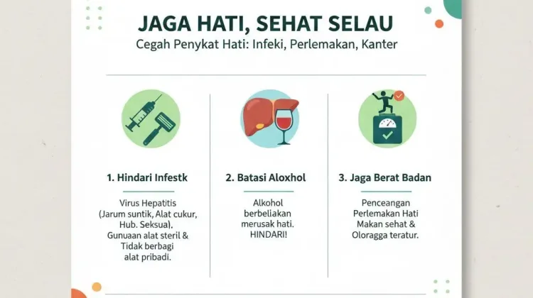 Selain infeksi, perlemakan hati dan konsumsi alkohol berlebihan juga jadi pemicu kerusakan organ hati. Dokter Putri menyarankan untuk menghindari alkohol dan menjaga berat badan ideal sebagai langkah pencegahan yang tak kalah penting.