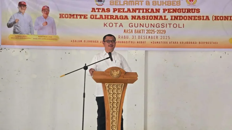 Komite Olahraga Nasional Indonesia (KONI) Kota Gunungsitoli masa bakti 2025-2029, yang dikukuhkan oleh Wakil Ketua IV mewakili Ketua Umum KONI Sumatera Utara, di lantai II kantor Wali Kota Gunungsitoli, Rabu (31/12/2025).