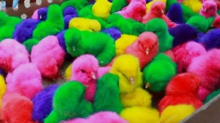 RRI.CO.ID, Jakarta : Mungkin kita pernah lihat anak ayam warna-warni di pasar yang diperjual belikan, dan kita juga tahu ada yang suka karena lucu dan imut, dan ada yang kontra dengan pewarnaan anak ayam warna-warni ini, karena kasihan ayam kecil di warnai dengan zat kimia sampai tidak ada kekuatan imun bagi si anak ayam dan biasanya mati kurang dalam satu minggu. Tapi apakah ada yang tahu bahwa di balik warna warni ayam tersebut ada cerita kelam di industri peternakan.