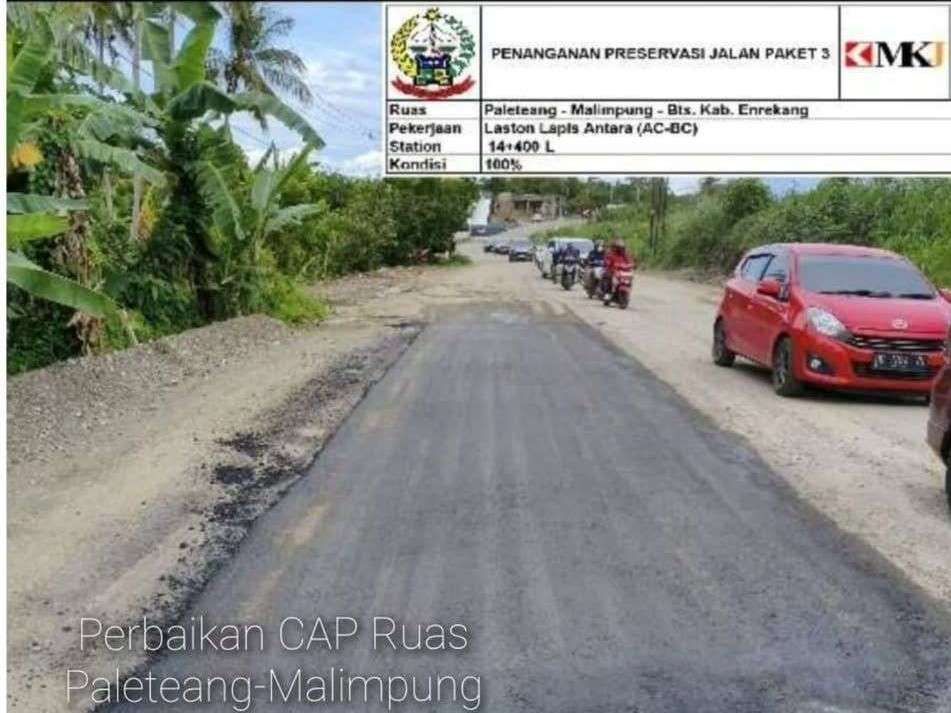 Gubernur Sulawesi Selatan Andi Sudirman Sulaiman secara langsung melakukan pembaruan (update) progres pengerjaan Jalan Paleteang–Malimpung pada Paket MYP Paket 3 Pemprov Sulsel. Ia menyampaikan permohonan maaf kepada masyarakat atas terganggunya arus lalu lintas selama proses pengerjaan berlangsung.