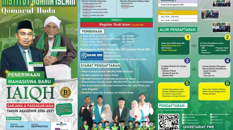 RRI.CO.ID, Lombok Tengah - Dalam upaya terus meningkatkan kualitas sumber daya manusia, Institut Agama Islam Qamarul Huda (IAIQH) kembali membuka pendaftaran mahasiswa baru tahun akademik 2026/2027.