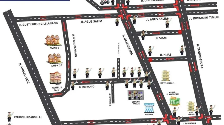 “Kita akan memberlakukan jalan satu arah untuk Jalan Tanjungpura dan Jalan Gajahmada pada malam tahun baru,” ujarnya, Selasa (30/12/2025).