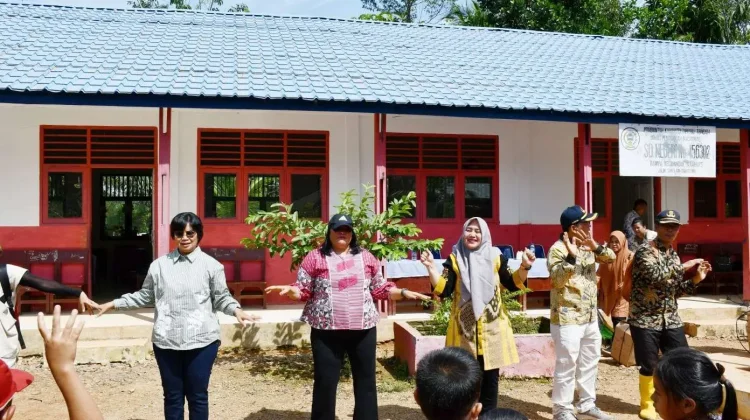 Ketua TP-PKK Tapteng bersama Donatur Bagikan Peralatan Sekolah