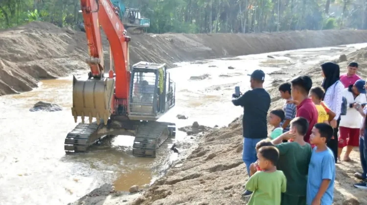 Ia menjelaskan, pengerjaan normalisasi sungai meliputi pembersihan material tanah dan kayu, penimbunan serta pemuatan material sirtu untuk pembangunan jembatan aramco, serta penggalian sisi kiri tebing jalan guna membentuk trase jalan yang lebih baik.