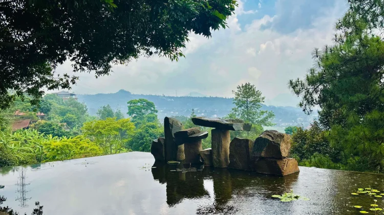 The sequence ends at the Lawang Stone (Javanese for “door”), leading to the infinity pool. Here, the Water Stones symbolize life merging with the universe. The tranquil water, mysterious infinity edge, and stones set against the natural backdrop evoke a bridge to the cosmos.